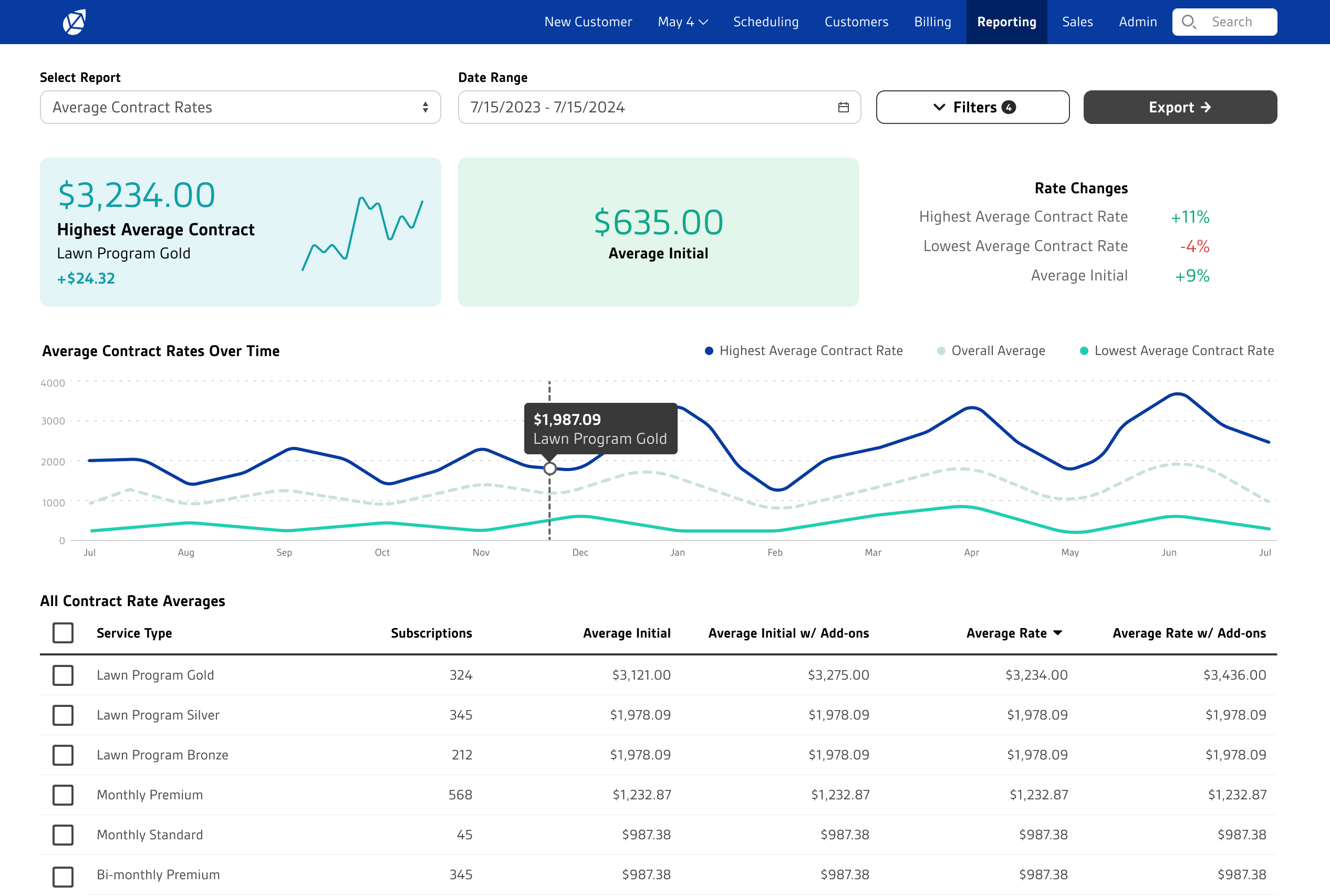 Field Routes, a SaaS platform for lawn care companies, was receiving a growing number of complaints about the 100+ reports in it’s OpsConsole product. Lack of features made FieldRoutes lose out against competition which increased churn. The poor learnability of reports incurred hidden costs such as expensive training and increased customer service tickets. Additionally, engineering resources were scarce, leaving little capacity to fix 100+ report screens.